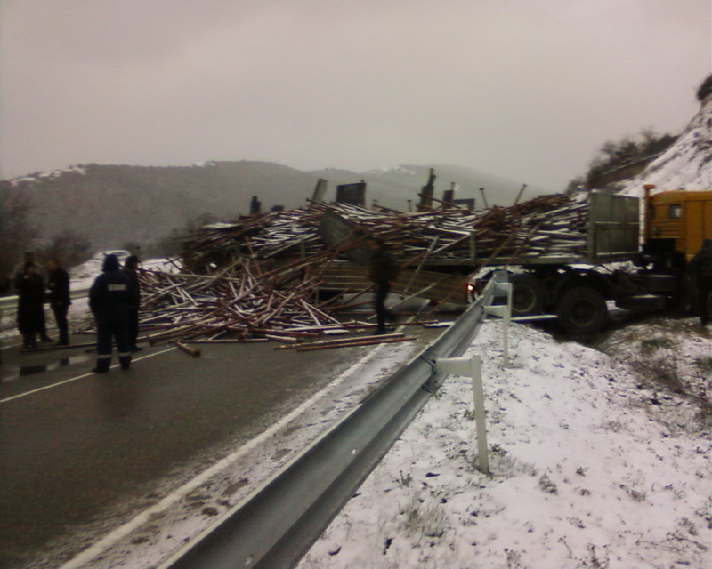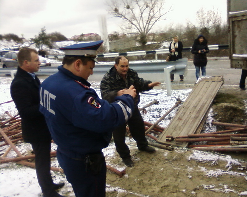 Огромная фура, перевозившая металлические конструкции, якобы врезалась в гору на дороге Сукко – Анапа. Кузов грузовика и рассыпавшийся металл полностью перекрыли трассу. В гостинице Сукко жили все наблюдатели кандидата от «ЯБЛОКА», приехавшие на выборы из Краснодара и Таганрога, в том числе из организации «Гражданин наблюдатель».