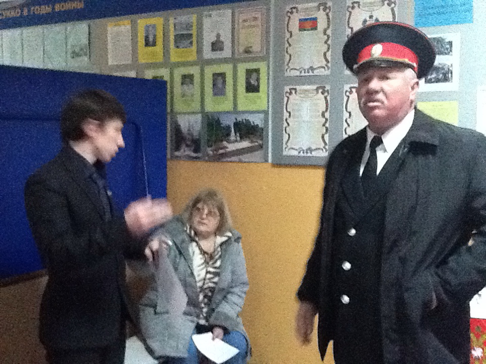 Председатель комиссии попросил есаула (справа) удалить от урны наблюдателей от "ЯБЛОКА" (слева)