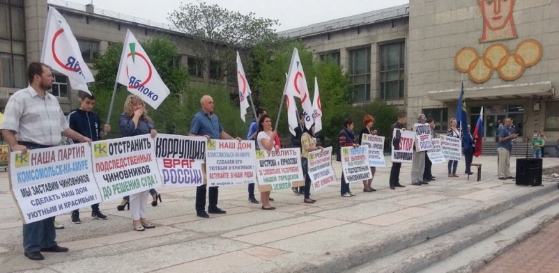 «ЯБЛОКО» на митинге потребовало отстранить подследственных чиновников Комсомольска-на-Амуре от должностей