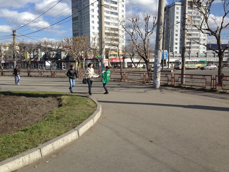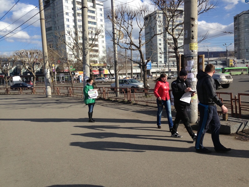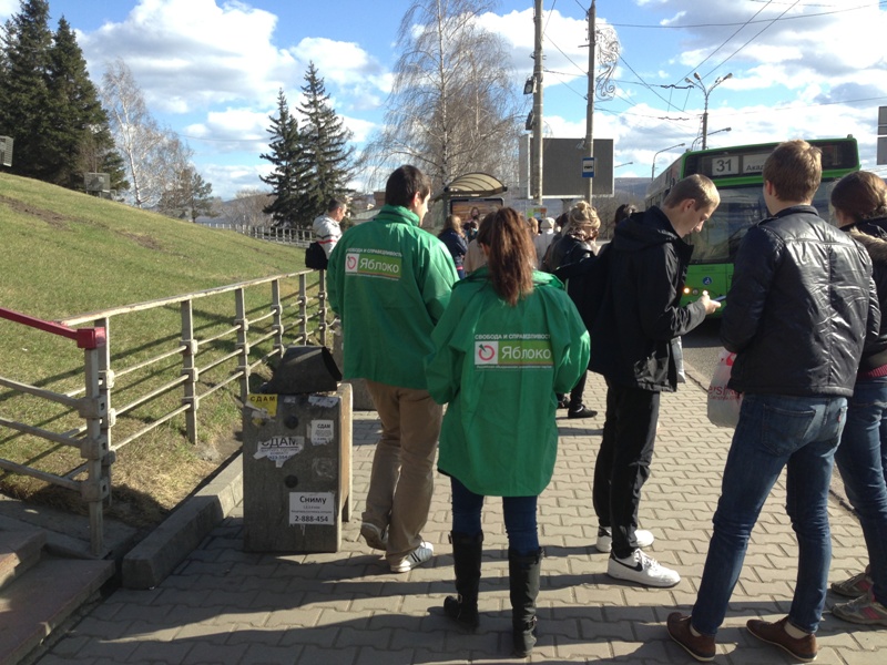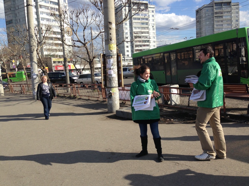 Волонтеры партии «ЯБЛОКО» на протяжении двух недель раздавали на улицах Красноярска партийную газету. Газета распространялась в Центральном и Свердловском районах города на улицах: Мира, Ленина, Вейнбаума, Карла Маркса, Матросова, Красноярского рабочего.