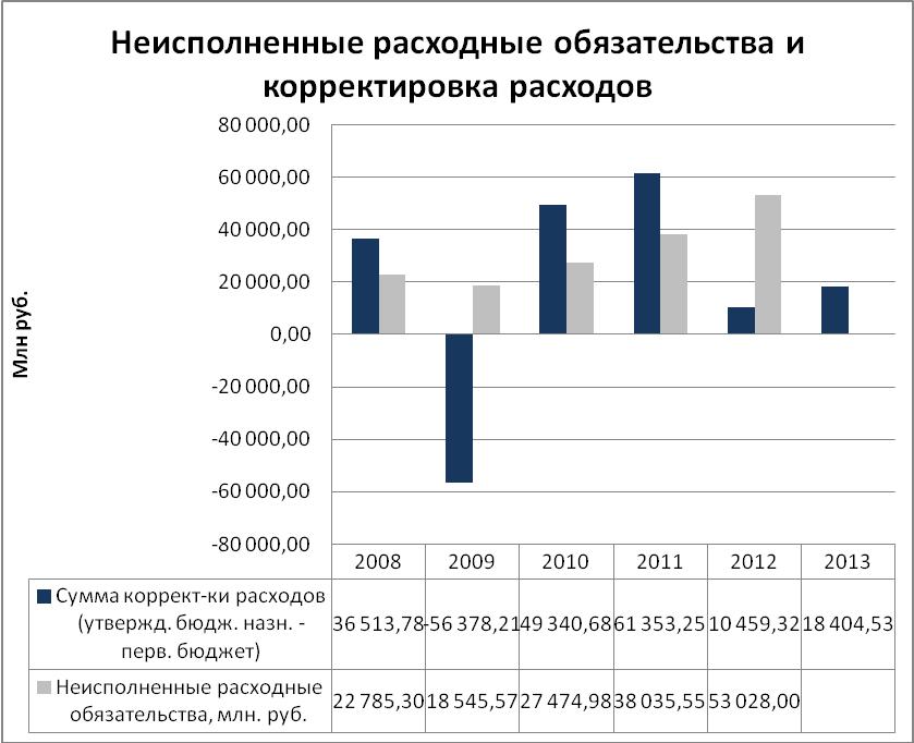 Необходимо отметить, что между величиной корректировки бюджета и величиной неиспользованных в прошлом году средств никакой корреляции нет (хотя, казалось бы, должна быть!). Независимо от того, увеличиваются ли расходы бюджета в ходе корректировки или уменьшаются, превышает сумма корректировки сумму остатков с прошлого года или оказывается ниже нее – ясно видно только одно: исполнение бюджета ухудшается с каждым годом. Не исполняется не только «откорректированный», увеличенный, бюджет, но и первоначально утвержденный. Именно на это обращает внимание Контрольно-счетная палата в своем отчете, когда указывает на «нецелесообразность принятых решений по увеличению ряда бюджетных назначений».