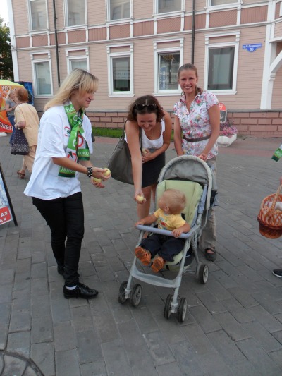 Активисты раздали более 15 килограммов яблок. Подобные акции активисты обещали проводить регулярно.