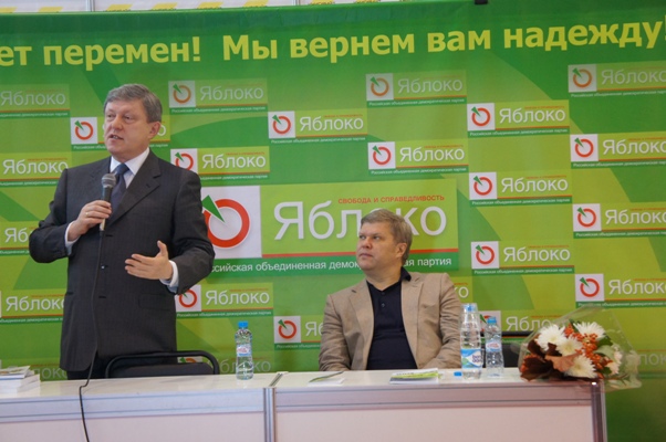 В субботу, 7 сентября, Григорий Явлинский, основатель партии «ЯБЛОКО», член ее Политического комитета, презентовал на 26-й Московской международной книжной выставке-ярмарке на ВВЦ свою книгу «Мутное время» — сборник статей и публикаций за период с 2008 по февраль 2013 года. Поздравить Григория Явлинского с презентацией новой книги пришел и лидер партии «ЯБЛОКО», кандидат в мэры Москвы Сергей Митрохин.