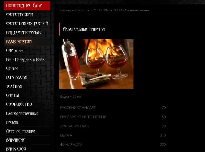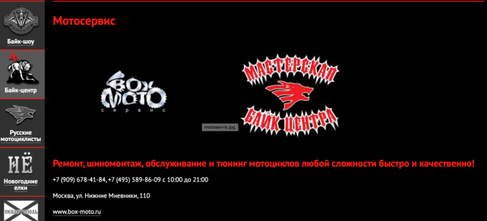 На сайте масса информации о вечеринках, ночном клубе и гостинице, банкетах на заказ. Есть у байкеров, разумеется, и свой мотосервис, не бесплатный, конечно: