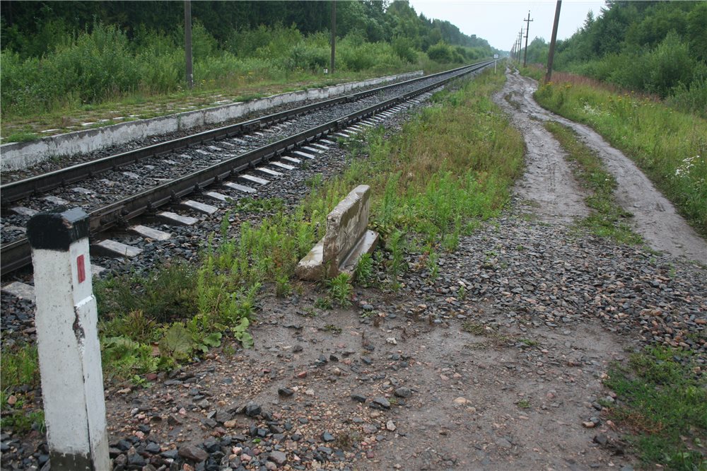 Так начинается дорога в деревню Должицы от железнодорожного переезда у дер. Любонег у железнодорожной отметки «232 км».