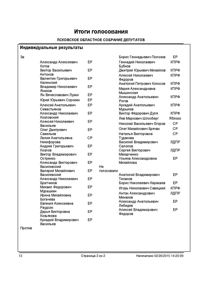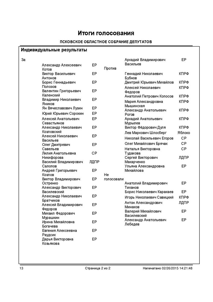 К сожалению, большинство Псковского областного Собрания депутатов тогда выступило за принятие этих законов.