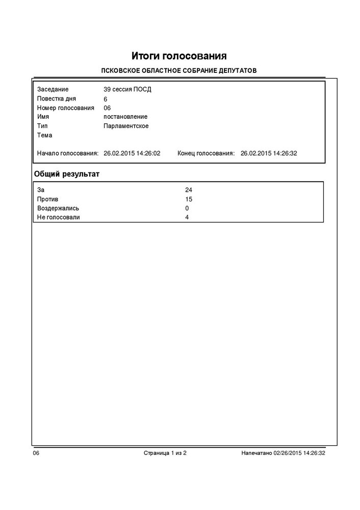 И, наконец, апофеоз, повторное голосование, за отклонение протеста 24 депутата, против 15: