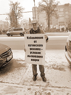 Георгий Александрович вышел на площадь с плакатом «Избавление от путинского режима – условие выживания нации».