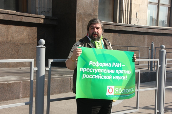 Лидер «ЯБЛОКА» вышел к Госдуме в пикет против реформы РАН