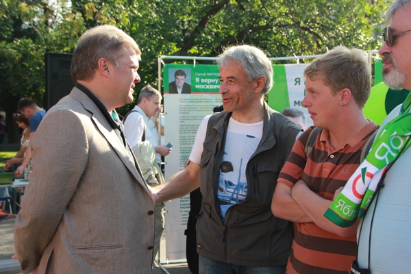 После мероприятия Сергей Митрохин отправился на дебаты: «Я действительно не собираюсь отказываться от дебатов, хотя у нас сейчас такое модное поветрие началось».