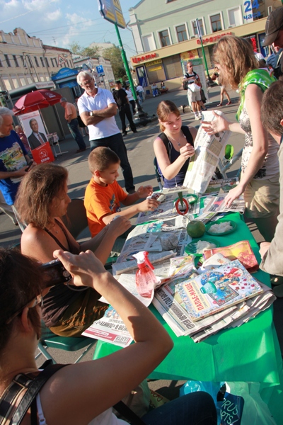 Жители города могли не только пообщаться с Сергеем Митрохиным лично, задать ему интересующие их вопросы, но и поучаствовать в мастер-классе по лепке яблок из папье-маше, попробовать яблоки в честь Яблочного Спаса, посмотреть музыкальные номера.
