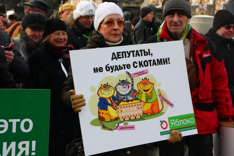 Лидер партии «ЯБЛОКО» Сергей Митрохин призвал участников «Социального марша» не просить у команды Собянина «подачек» и «сменить власть в городе на ближайших выборах в Мосгордуму». «Мы предлагаем всему гражданскому обществу объединиться на выборах в Мосгордуму и , в котором выделяем половину мест для гражданских активистов», - заявил С. Митрохин, выступая на митинге на проспекте Сахарова, которым закончился марш.