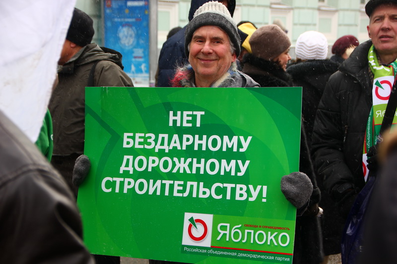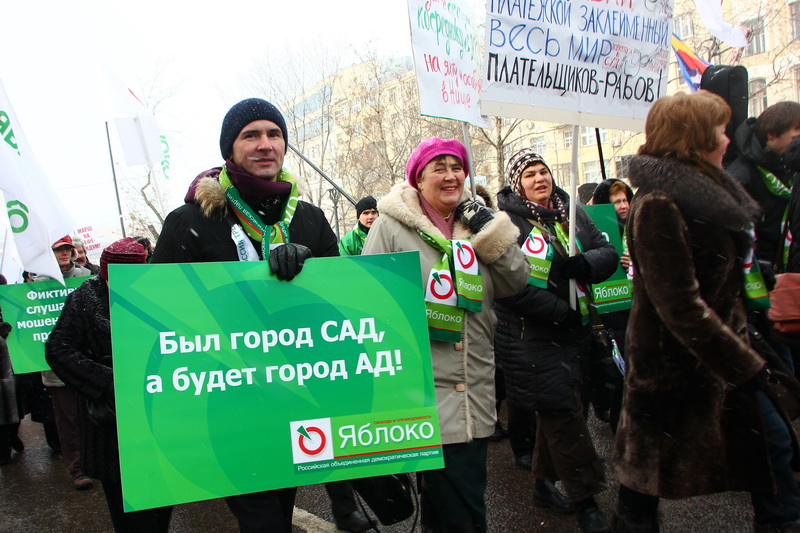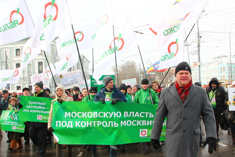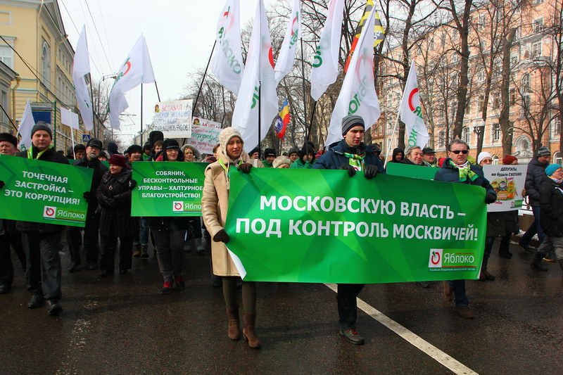 Митинг на проспекте Сахарова предваряло шествие по бульварам. Колонна «ЯБЛОКА» вместе с колоннами других политических сил прошла от Пушкинской площади по Страстному, Петровскому, Рождественскому и Сретенскому бульварам. К партийцам примкнули представители инициативных групп граждан, которым «ЯБЛОКО» в свое время помогало в борьбе за их права.