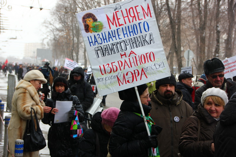 Во главе колонны активисты несли баннер с лозунгом «Московскую власть - под контроль москвичей!».