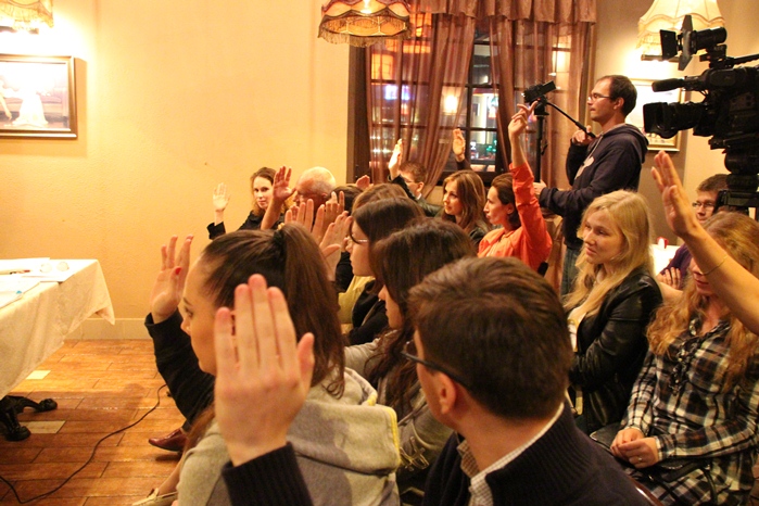 Управляющему совету пришлось собраться не в здании школы, а в помещении арендованного кафе, так как директор Салонина выгоняла членов совета из школы, не предоставляя возможности проводить собрания.