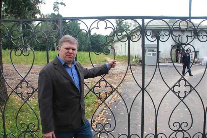 Сергей Митрохин у забора, преграждающего доступ в парк