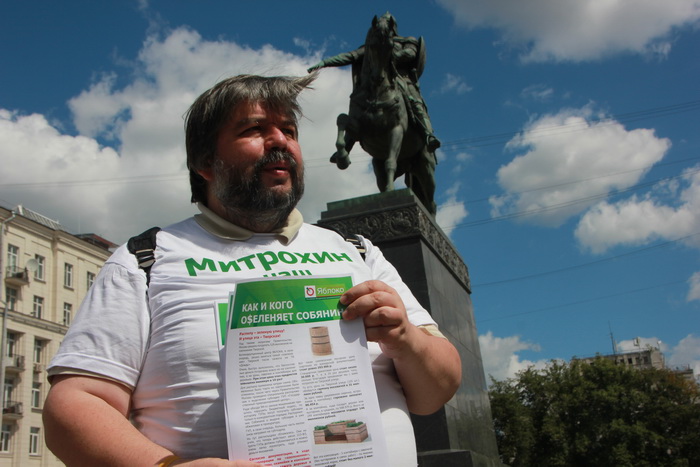 «Все эти мероприятия проходят под брендом «озеленения», - лидер «ЯБЛОКА» показывает рукой на гранитный монстр с двумя квадратными метрами рулонного газона и липой с длинным тонким стволом и жидкой кроной. - Кого при этом озеленили, разберутся правоохранительные органы, куда я обратился. На озеленение в прямом смысле этого слова ушло только 11 млн рублей, а почти 300 млн ушло на эти каменные объекты, за которые чиновники получили гигантские отказы. Вот нынешняя политика мэра Собянина она такая».