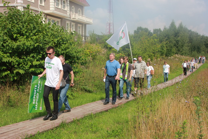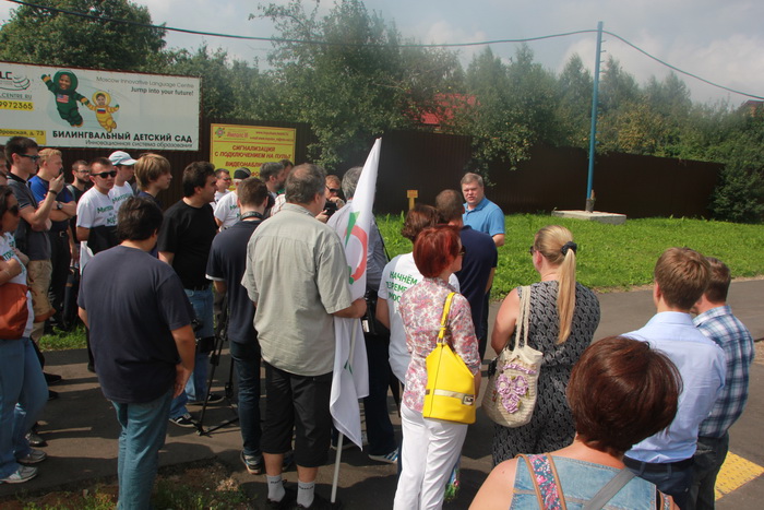 Для того, чтобы восстановить законность и привлечь внимание к проблеме, кандидат в мэры Москвы, местные жители и активисты «ЯБЛОКА» - всего около 20 человек – проникли на захваченную территорию и осмотрели ее.