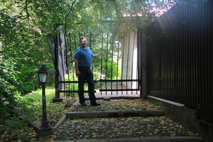 В заборе заднего двора Козловых активисты обнаружили калитку. Дорожка, вымощенная камнем, вела к массивной деревянной бане. Перед баней вырыты пруды с розовыми лилиями, берега украшают декоративные каменные пушки.