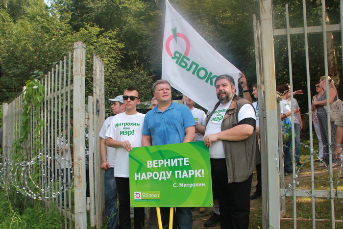 Кандидат в мэры Москвы Сергей Митрохин вместе с жителями Куркино и активистами партии «ЯБЛОКО» провел общественную инспекцию парка «Долина реки Сходни». Доступ к парку преграждает коттеджный поселок, где живет экс-префект СЗАО Виктор Козлов. Он присоединил к своему участку значительную часть особо охраняемой природной территории. Участникам инспекции пришлось демонтировать три забора, чтобы посмотреть, как устроились чиновники на украденной у народа земле.