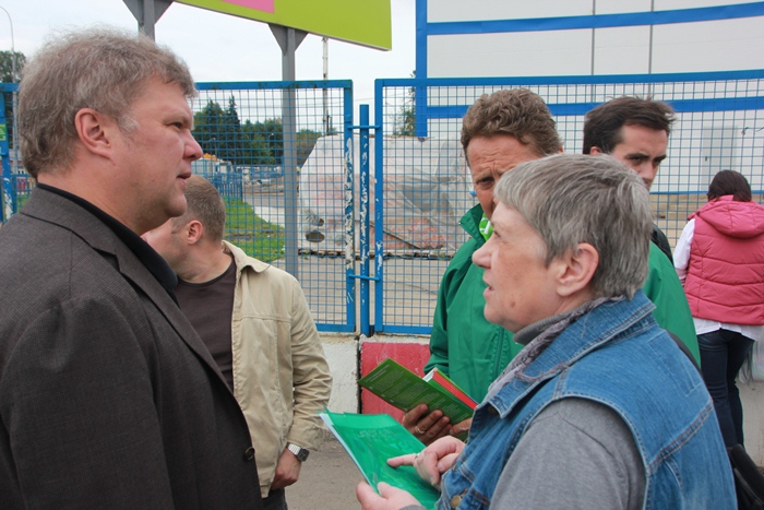 После этого Сергей Митрохин отправился к стадиону «Динамо», где сейчас компанией ВТБ ведутся работы по реконструкции объекта, и провел встречу с местными жителями. Люди недовольны, что под предлогом реконструкции, которая не была вынесена на общественные слушания, часть территории стадиона будет передана под строительство элитного жилья.