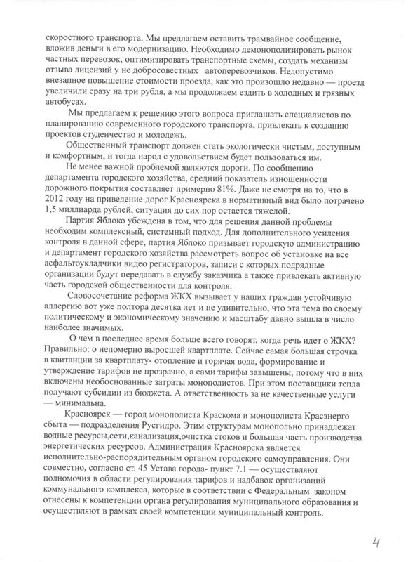 Председатель красноярского регионального отделения политической партии «Яблоко» Оксана Демченко (в прошлом депутат ЗС от КПРФ) отличилась самым длинным докладом, в рамках которого помянула, кажется, все проблемы Красноярска.