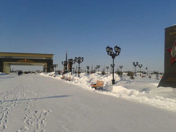 И так несуразно, на мой взгляд, выглядят монументальные сооружения в городе. Абсолютно безлюдные. Абсолютно в снежной пустыне...