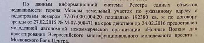 Те самые 19 га, которые Путин и Собянин подарили байкерам. Стоимость участка $95 млн., но выделен он, разумеется, бесплатно