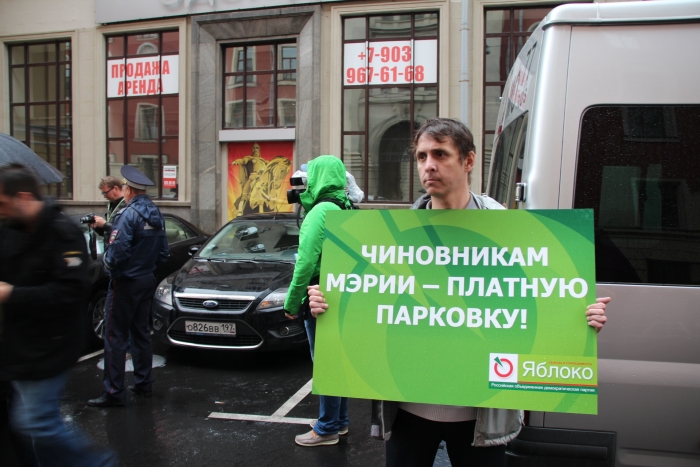 Он также рассказал об акции партии «ЯБЛОКО», когда автомобиль с символикой партии, за рулем которого был кандидат в депутаты Мосгордумы, член «ЯБЛОКА» Максим Круглов, заехал и припарковался на стоянке возле входа в здание мэрии на Тверской, 13.