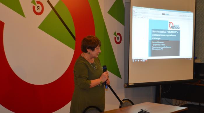 В рамках партийной школы Галина Михалева прочла первую в новом цикле лекцию "От блока к объединенной партии: История Яблоко".