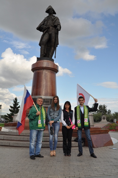 Флэшмоб-фотосессия с российским и партийным флагом прошла у памятников командору и дипломату Николаю Резанову, художнику Василию Сурикову и писателю Антону Чехову. Горожане не только могли сделать фотографии с двумя флагами на фоне достопримечательностей города, но и пообщаться с кандидатами в депутаты.