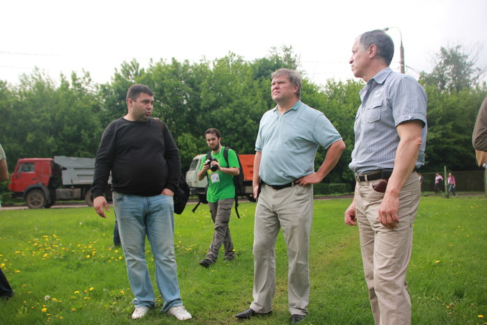 Михаил Столетний, Сергей Митрохин и Олег Сулукадзе (слева направо) оценивают выполнение решений о сносе незаконных обьектов