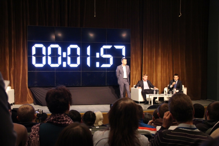 Слева направо: ведущий, депутат МГД Семенников, рук. Департамента правительства Москвы по природопользованию Кульбачевский, главный архитектор города Кузнецов