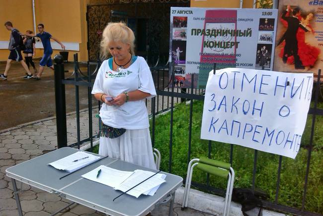 24 августа в Чите прошел первый из серии пикетов против федерального закона «О капитальном ремонте». В рамках данной протестной акции председатель фракции «Зеленая Россия» регионального отделения партии «Яблоко» Марина Сухинина и председатель Забайкальского центра поддержки гражданских инициатив Марина Саватеева собирали подписи за отмену данного закона Об этом корреспонденту «Забмедиа» сообщила сама Марина Сухинина.