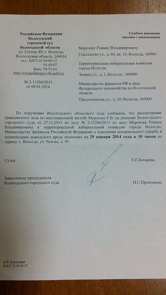 Приглашаю всех кто хочет 29 января 2014 года в Вологодский областной суд на рассмотрение моей апелляционной жалобы.