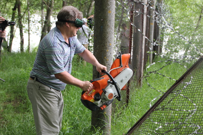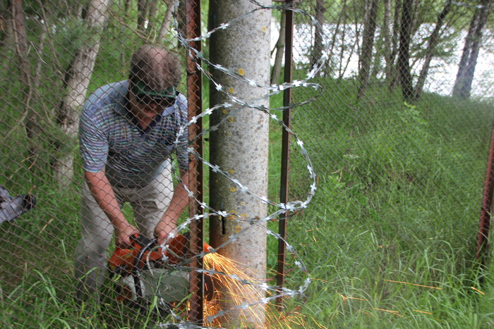 Спиленные секции и стойки забора мы аккуратно складывали на полянке у будки рядом с бывшими воротами.