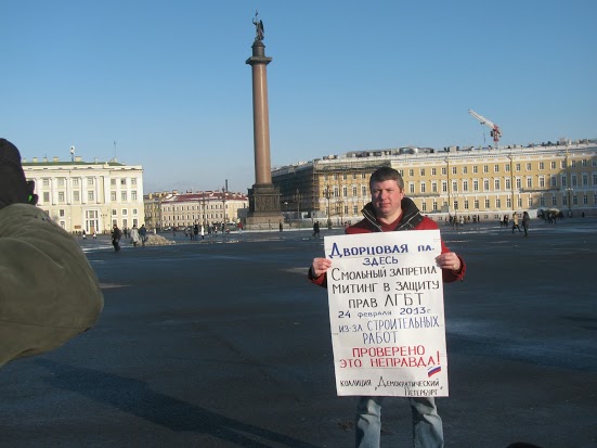В это воскресенье коалиция планировала провести митинг против федерального закона о «гей-пропаганде». Заявка в Смольный подавалась четыре раза, на 20 разных мест. Везде в согласовании митинга было отказано. Организаторы были готовы провести акцию в любое время с 12 до 18 часов, однако, по утверждениям чиновников Смольного, все предложенные места были на все это время либо заняты другими мероприятиями или проводимыми работами, либо митинг подпадал под какой-то запрет.