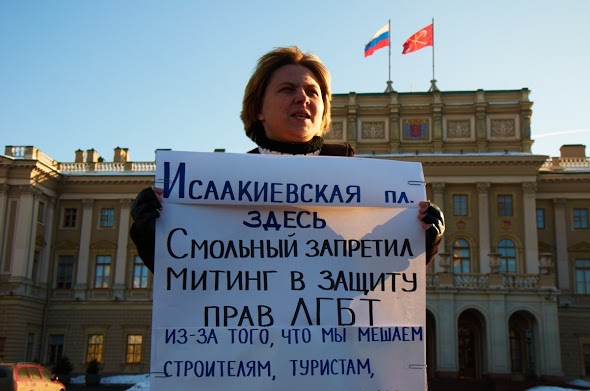 Отметим, что закон Санкт-Петербурга, запрещающий митинговать на Невском проспекте, Исаакиевской и Дворцовой площадях, принятый на днях ЗакСом в третьем чтении, пока не вступил в силу, он ожидает подписания губернатором. Но чиновники уже успешно справляются с этим запретом без всякого закона, выдумывая нелепые аргументы.