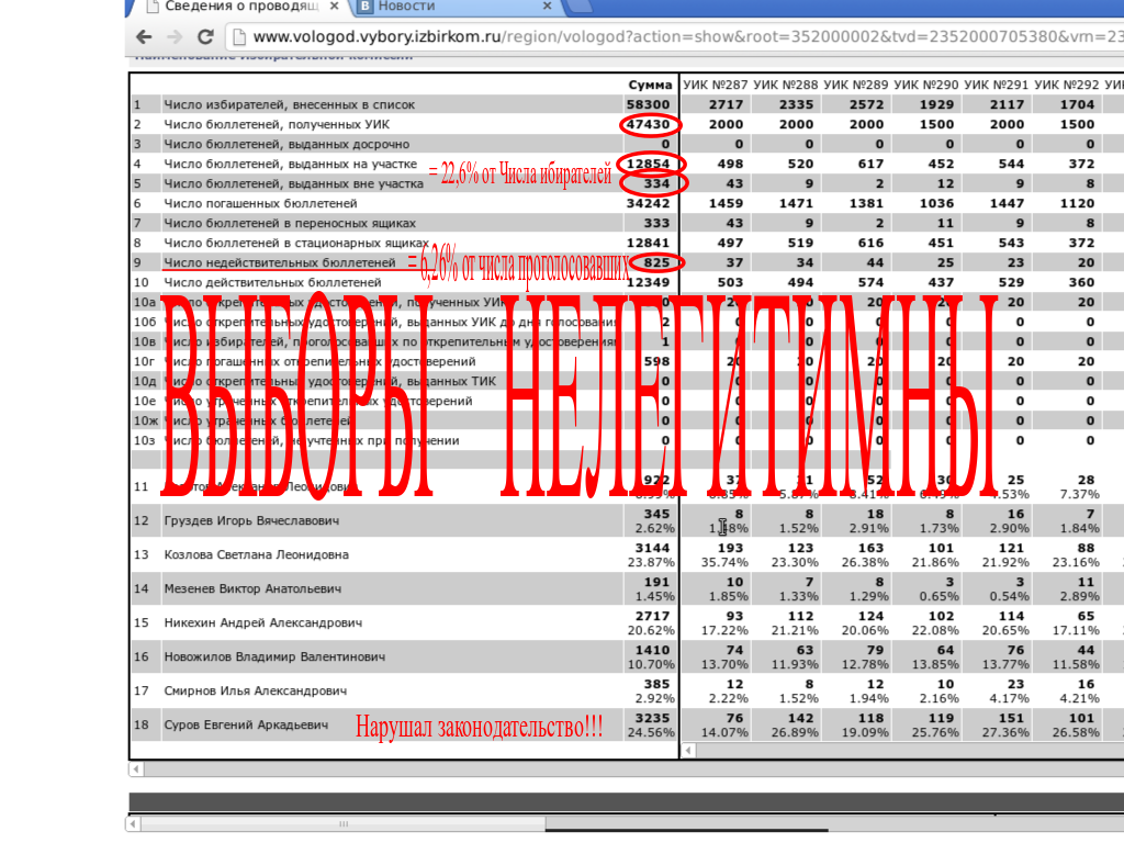 По мимо низкой явки, очень большая часть испорченных бюллетеней. Я много был на выборах, но по-моему эта цифра поражает!!!