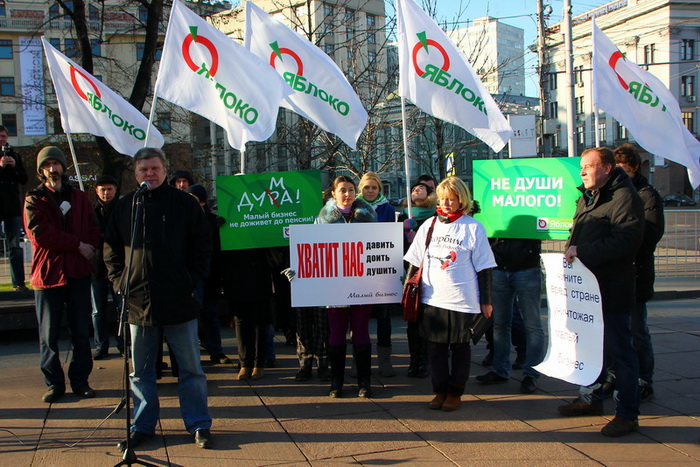 «ЯБЛОКО» в конце прошлого года буквально «било во все колокола». и, что эта негодная затея будет иметь результатом сокращение числа ИП. Депутат «ЯБЛОКА» Лев Шлосберг через Псковскую областную Думу исправляющую положение дел поправку, партия проводила в день принятия закона у стен Госдумы России . Для тогдашних выступлений «яблочников» характерен мой блог на «Эхо Москвы» от 21 ноября 2012 года .