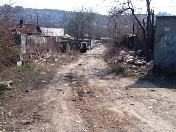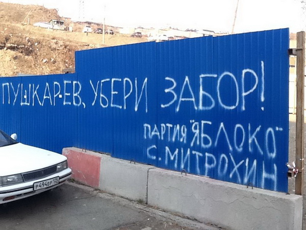 на этой фотографии видна вся политика Пушкарева. Мусор — жителям (справа), землю — рейдерам (слева)