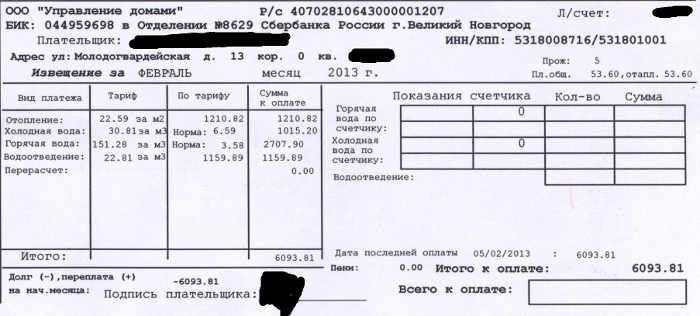 Вот конкретная платежка. Трехкомнатная квартира. 6094 рубля.