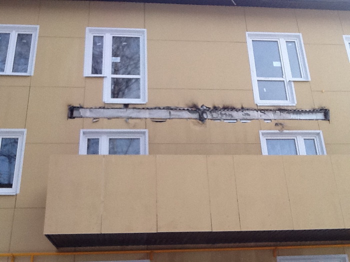 В результате в квартирах 8 градусов тепла, на стенах трещины, в ванных комнатах протечки. Двери и окна перекошены. В доме для ветеранов не работает лифт. Да о чем ещё говорить, если через 3 недели после приемки в доме упал балкон (!)