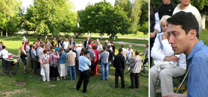 16 июля мне вместе с Николаем Кузницовым ступинцев на милицейско-казачьего оцепление, препятствовавшее проходу горожан на центральную площадь, чтобы выразить свое несогласие с планом Ротенбергов.