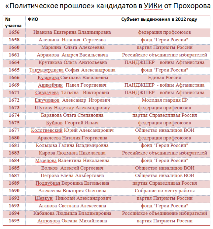 «Политическое прошлое» кандидатов в УИКи от Прохорова