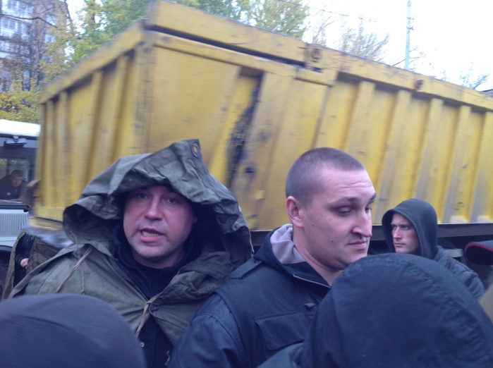 Въезд строительных машин во двор происходил при поддержке пехоты, выстроившейся в каре.