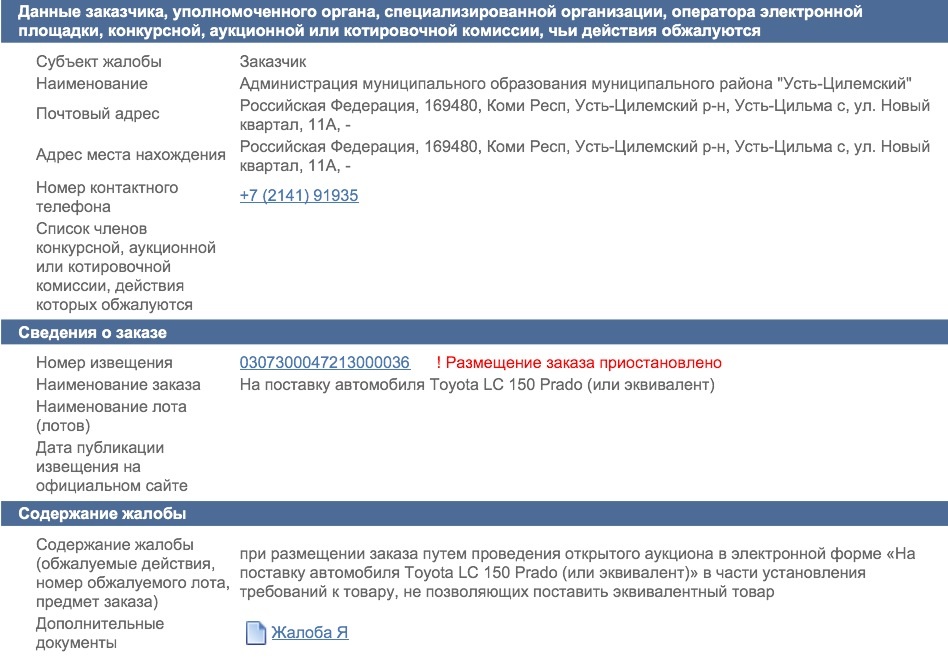 Днем 1 июля блогер Владимир Прокушев разместил на своей странице в "ЖЖ" пост "Скинемся на Toyota LC 150 Prado для администрации Усть-Цилемского района?", в котором рассказал об аукционе, размещенном на сайте госзакупок.