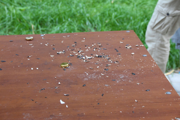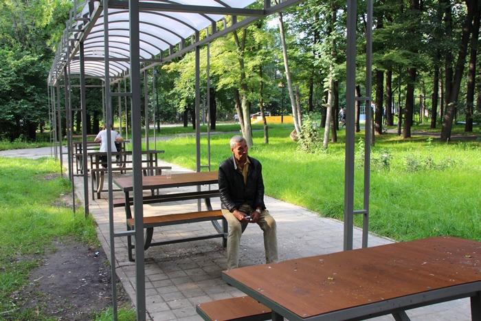 Пять столов со скамейками, организованных якобы для настольных игр пенсионеров, сегодня загажены и превращены в места для распития спиртных напитков.