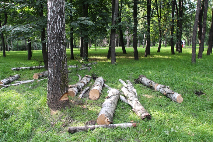 Часть спиленных деревьев до сих пор находятся на территории парка