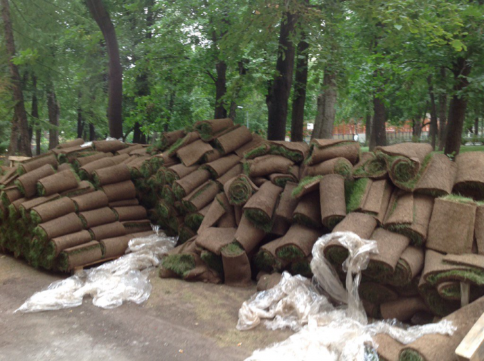 Рулонный газон уступает плитке по масштабам мобилизации финансов, но не по вреду для окружающей среды. Содранный под ним почвенный слой утрачивается безвозвратно, при этом по правилам его надо перекладывать раз в 2-3 года что сулит бесконечную возобновляемость освоения бюджетных денег
